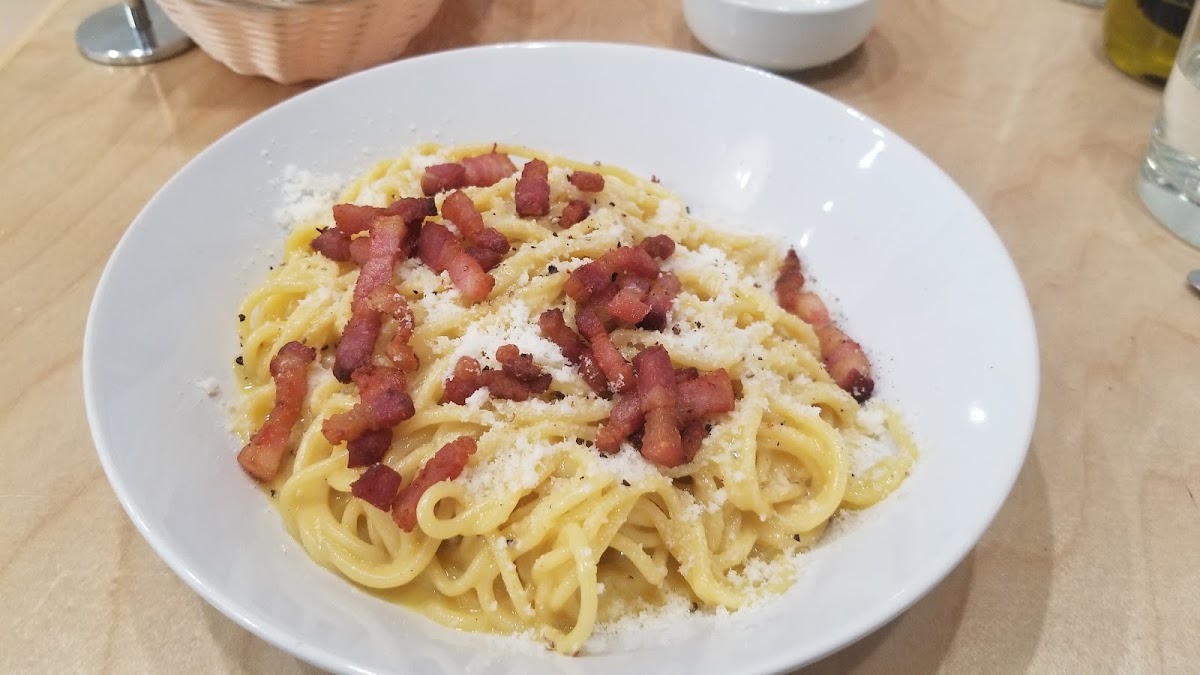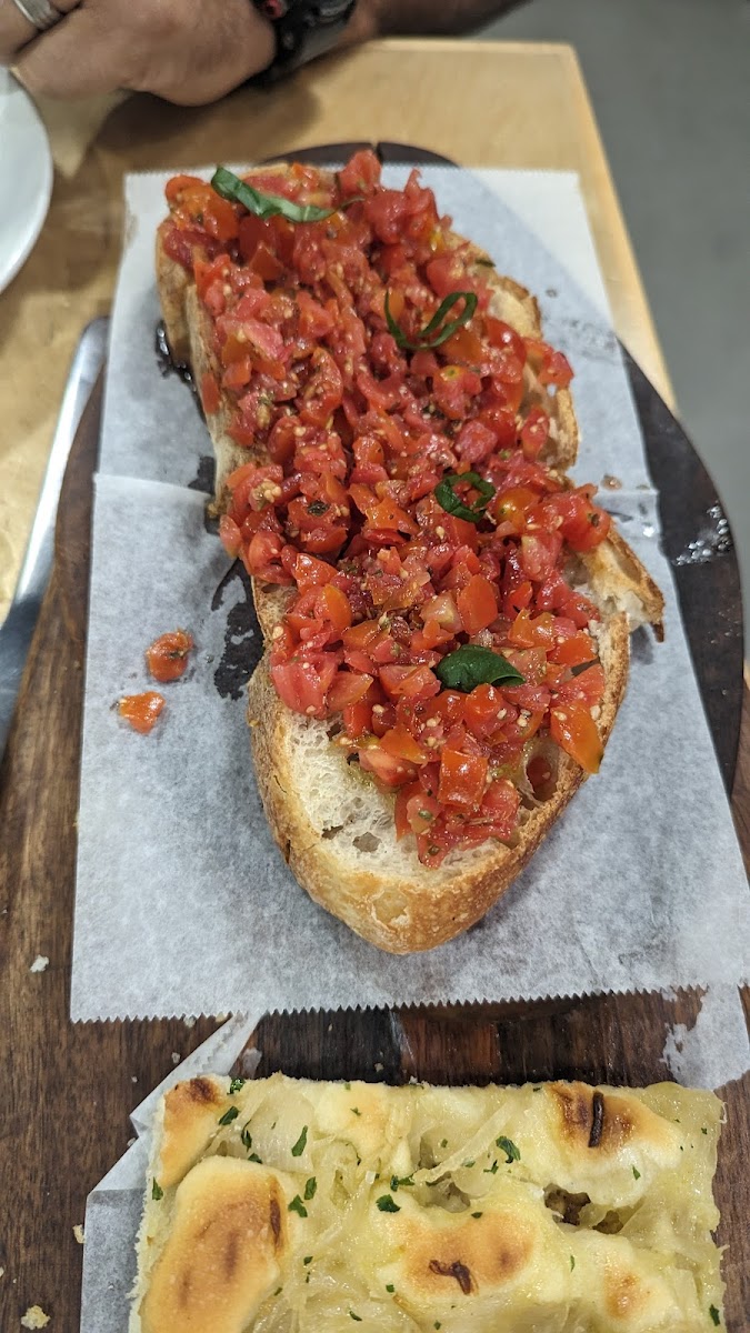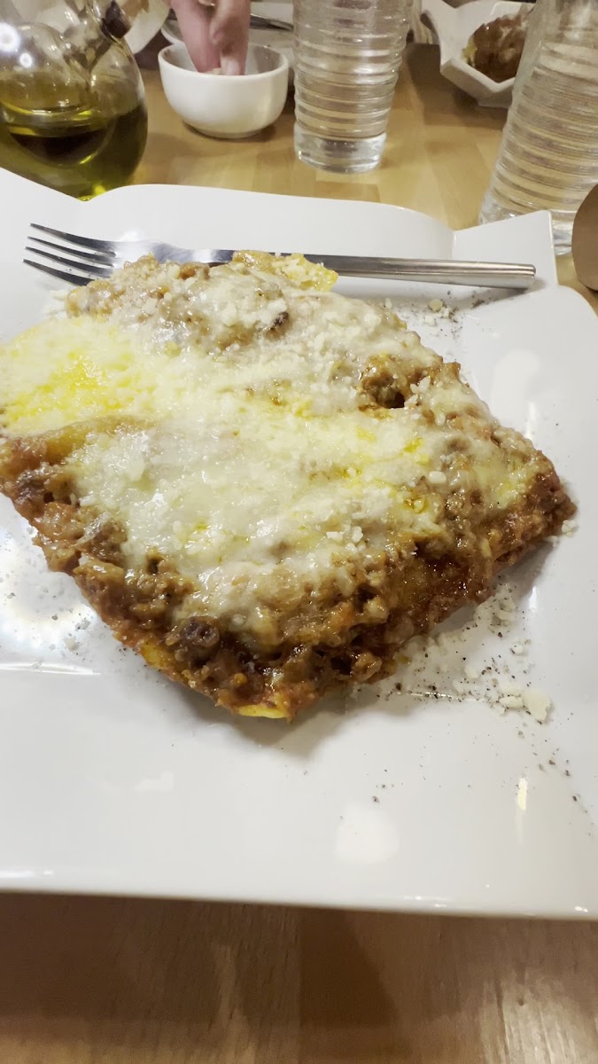 Service is impeccable and the food is terrifically tasty. We got in just 25 minutes before they were closing and they treated us like we've been there at a reasonable time. I really appreciate that and they never made us feel like we needed to rush. We got the pesto lasagna, carbonara, bruschetta, and a salad. We were hungry and then we left stuffed. They have nice bread to start you off with and dip in olive oil and vinegar. I always love that to get me going at the start of a meal. The best thing was definitely the pesto lasagna. I've never heard of that and it was super fresh and new and importantly, tasty. The carbonara was good, but it had a little too much flavor in an odd way. It felt really smoky, which is not what I'm looking for with carbonara. Inside is nice and clean